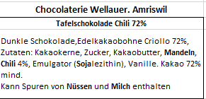 Tafelschokolade 72% mit ChilikrokantCHF9.80 Tafelschokolade 72% mit Chilikrokant Menge In den Warenkorb Kategorie: Tafelschokoladen Beschreibung Zusätzliche Informationen Beschreibung Tafelschokolade Arriba 72%, Kakao aus Equador mit Chilikrokant. Herrlich scharf! Zusätzliche Informationen Gewicht 80 g Preis/100gr CHF 12.25 Ähnliche Produkte Tafelschokolade Bolivia 68% CHF8.50 In den Warenkorb Tafelschokolade 65% mit rosa Pfefferkrokant CHF9.80 In den Warenkorb Tafelschokolade 38% mit Caramelcrisp CHF9.80 In den Warenkorb Tafelschokolade Maracaibo 49% CHF7.80 In den Warenkorb